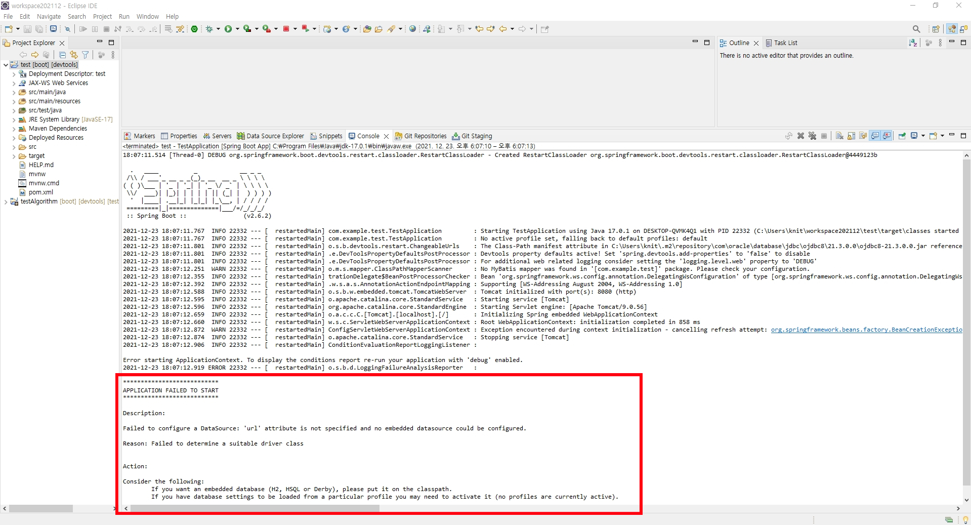 [spring boot] 에러 Failed to determine a suitable driver class (0) | 2021.12.24 |