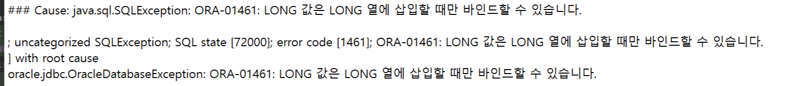 data type 'Long'을 'Clob'로 바꾸는 도중, 아래와 같은 에러를 만났다.